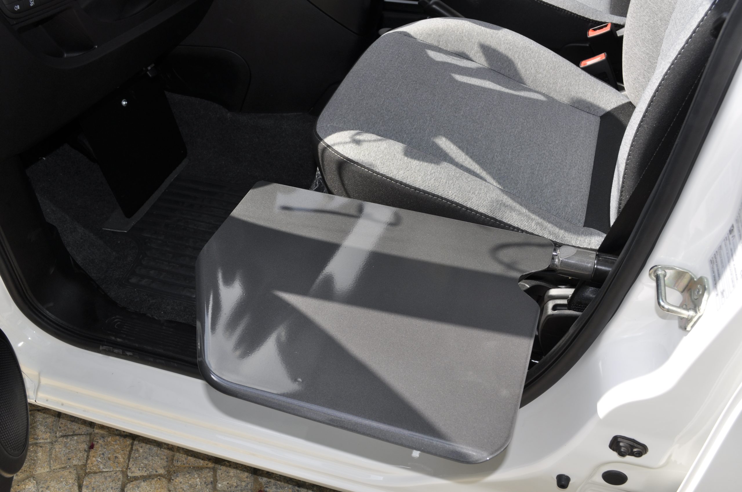 La ribaltina elettrica facilita il trasferimento dalla carrozzina al sedile dell’auto, creando un ponte di collegamento tra di loro. Questo dispositivo è consigliato per veicoli con notevole dislivello come monovolumi e fuoristrada.