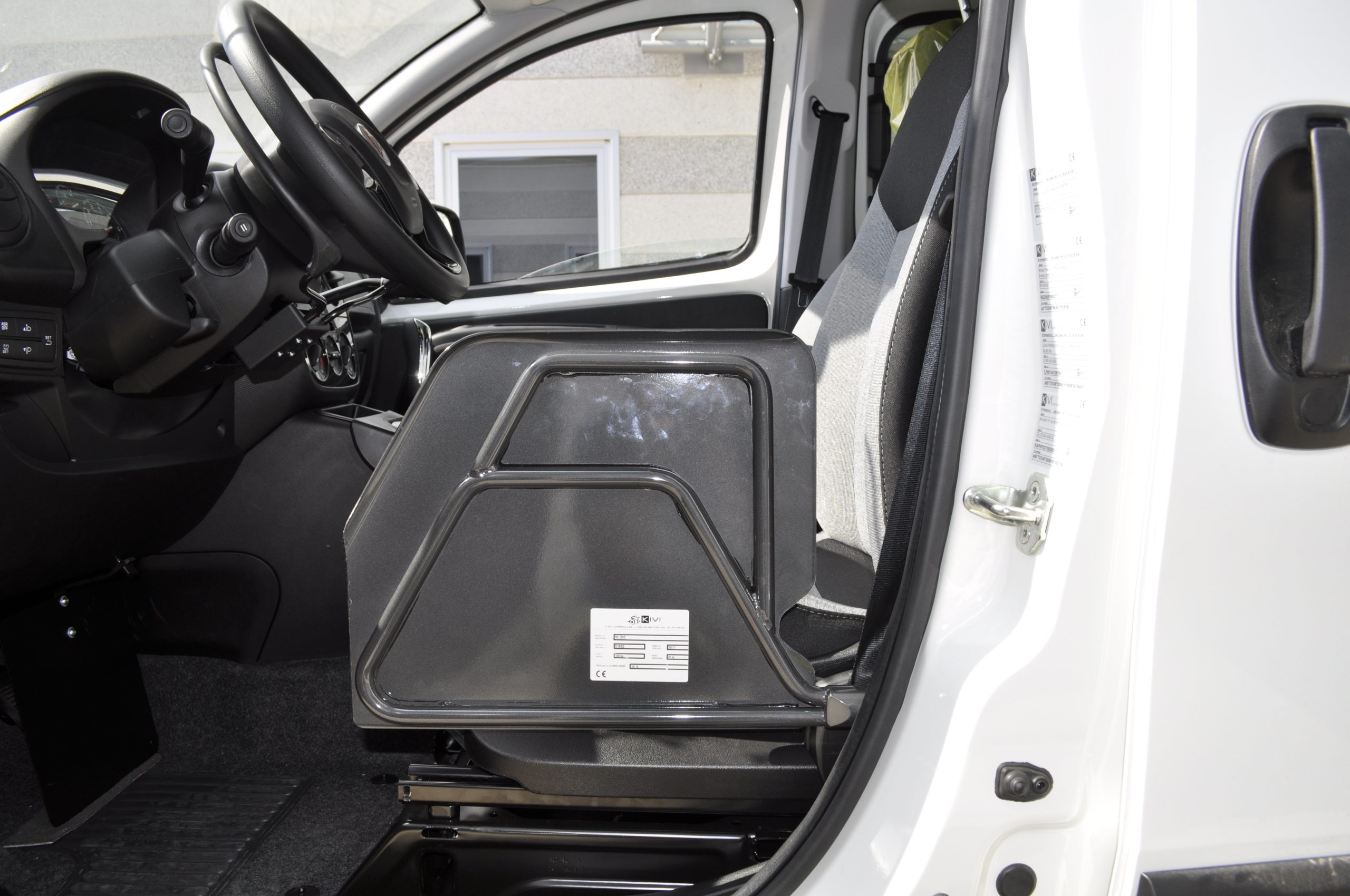 Può essere installata su veicoli a 3 o 5 porte, sia lato guida che passeggero, senza sostituire sedile e cinture. Il movimento di salita e discesa è controllato tramite pulsantiera o interruttore.